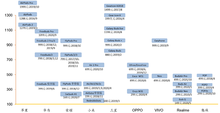 Iz perspektive distribucije robne marke, tržište TWS slušalica prvi je detonirao Apple. Nakon nekoliko godina razvoja, njegov proizvod AirPods ima vrlo visok tržišni udio na tržištu srednje i visoke klase. Prema podacima analize Counterpointa, od drugog kvartala 2020., tri vodeće tvrtke na TWS tržištu su Apple (35 posto), Xiaomi (10 posto) i Samsung (6 posto). tržište.